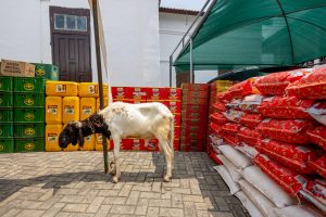 Items presented included bags of rice, cartons of tinned fish, cooking oil, soft drinks, bottled water, schnapps, alcoholic and non-alcoholic beverages, a ram, and 100 cartons of tomato paste.